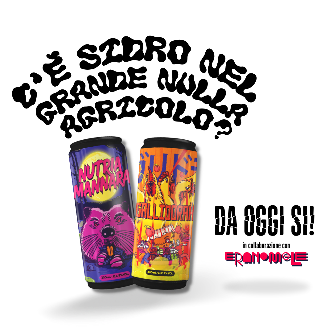 Dalla collaborazione con Eranomele sono nati due sidri ispirati al mondo di Villamara e del Grande Nulla Agricolo: Nutria Mannara e Gallidorah!